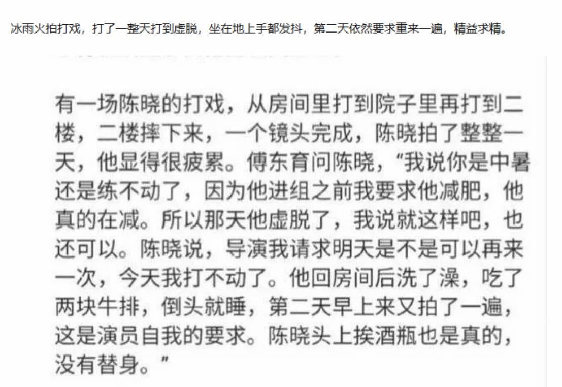 《冰雨火》导演傅东育曾记录他拍打戏拍到虚脱,仍坚持要求重拍以求完美