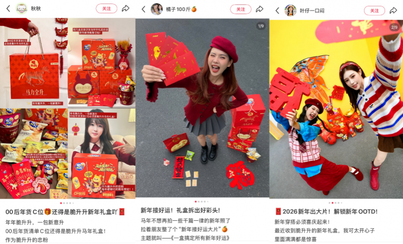 众多达人在社交平台分享脆升升新年系列礼盒