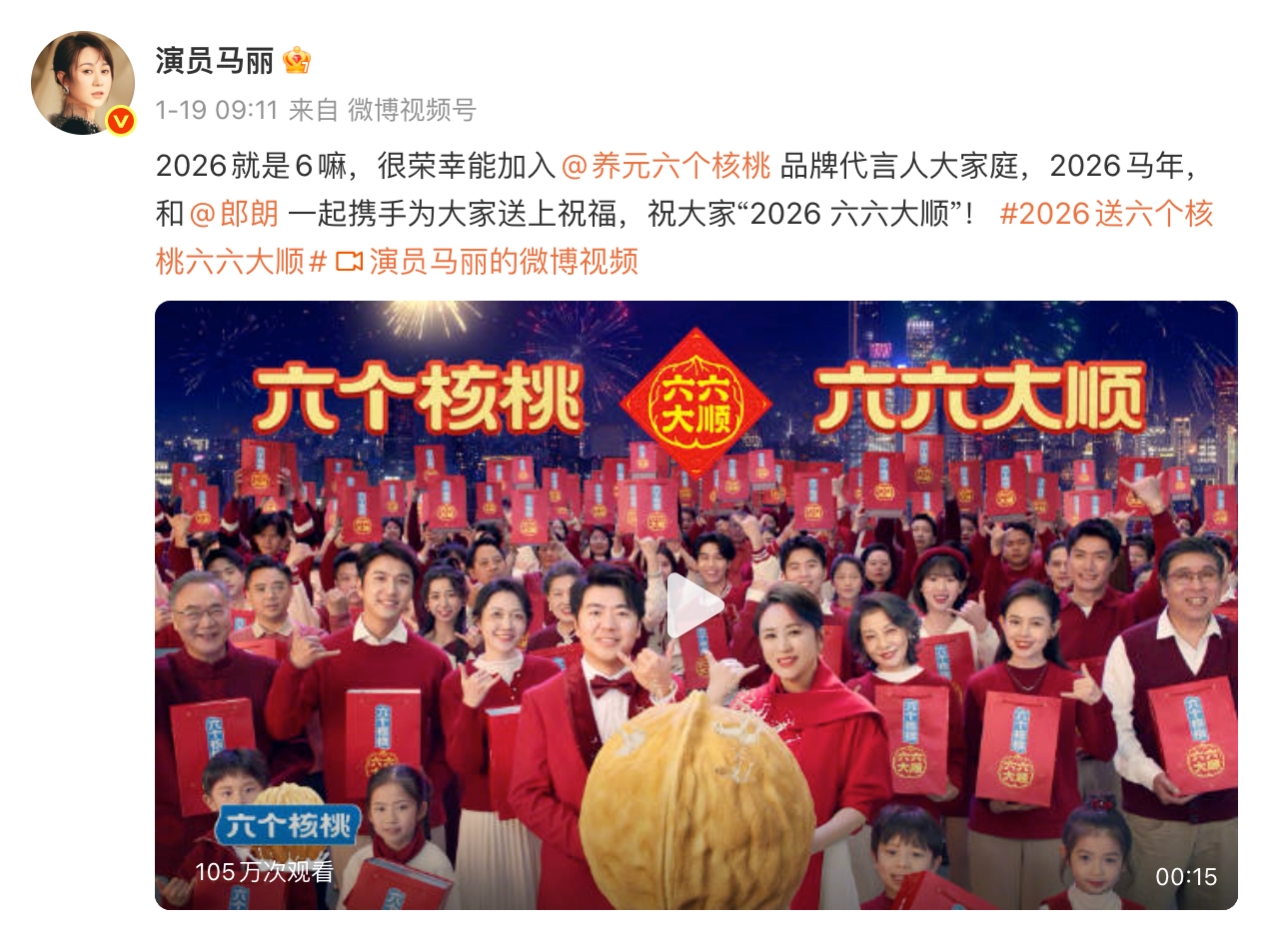 2026丙午马年,马丽的加盟为六个核桃注入了“马上六六大顺”的新春吉意。她国民度极高的亲切幽默形象,与春节阖家团圆的欢乐氛围高度契合,瞬间拉满新年仪式感。而品牌长期合作伙伴、国际钢琴大师郎朗本就是春晚熟客,自带浓郁的春晚年味,更以对艺术的极致追求,呼应着品牌一贯的匠心坚守。