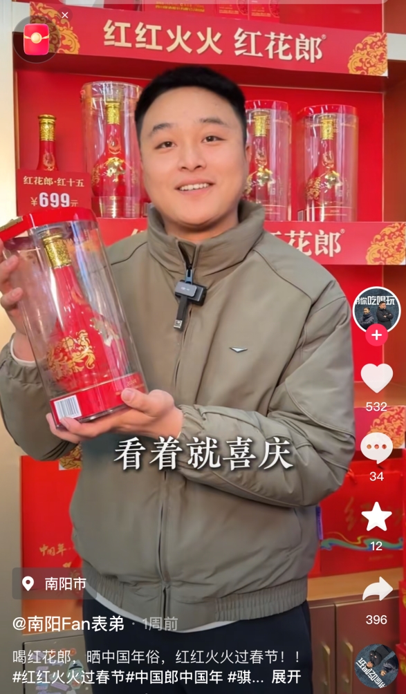 从目前的参与情况来看,不少网友晒出了自家年夜饭桌上的红花郎,配文“红红火火鸿运当头喝红花郎,今年年味更足”;还有渠道伙伴分享门店的春节布置,红彤彤的海报和堆头格外吸睛。