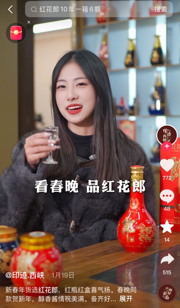 作为2026年总台春晚“骐骥驰骋 神采飞扬”合作品牌,红花郎不仅在春晚正片露脸,还开启了《开门迎春晚》等衍生节目,加上年俗微电影在新华社、人民网等央媒首发,品牌声量在春节前就达到了顶峰。消费者在电视上看到红花郎后,再接触抖音等平台的互动活动,容易完成从认知到参与的行为转化。