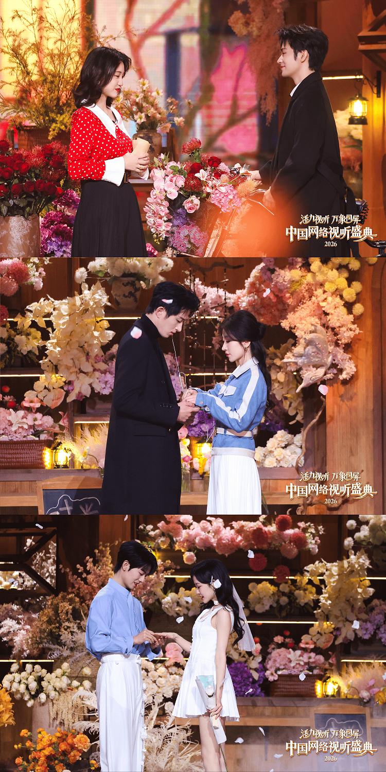 当实力歌者遇见短剧人气CP,会碰撞出怎样的火花?2026中国网络视听的舞台上,郁可唯携手《家里家外》王道铁&孙艺燃、《第六次攻略》王凯沐&王格格、《南音再许》曾辉&韩雨彤三对短剧热门CP,以抖音“重返20岁”系列青春回忆话题为情感锚点,带来情景唱演秀《花儿里的青春》,以唱演融合的形式,将三段跨年代的青春爱恋娓娓道来。