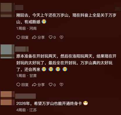 在抖音上,试图“一天打卡”的游客连呼“三天根本不够”;攻略里充斥着“值回1000元体验”的感慨;许多人倾诉着“万岁山戒断反应”,称其为“照顾所有人的讨好型景区”。情绪价值、参与感与社交货币,已成为新一代游客用脚投票的“硬通货”。