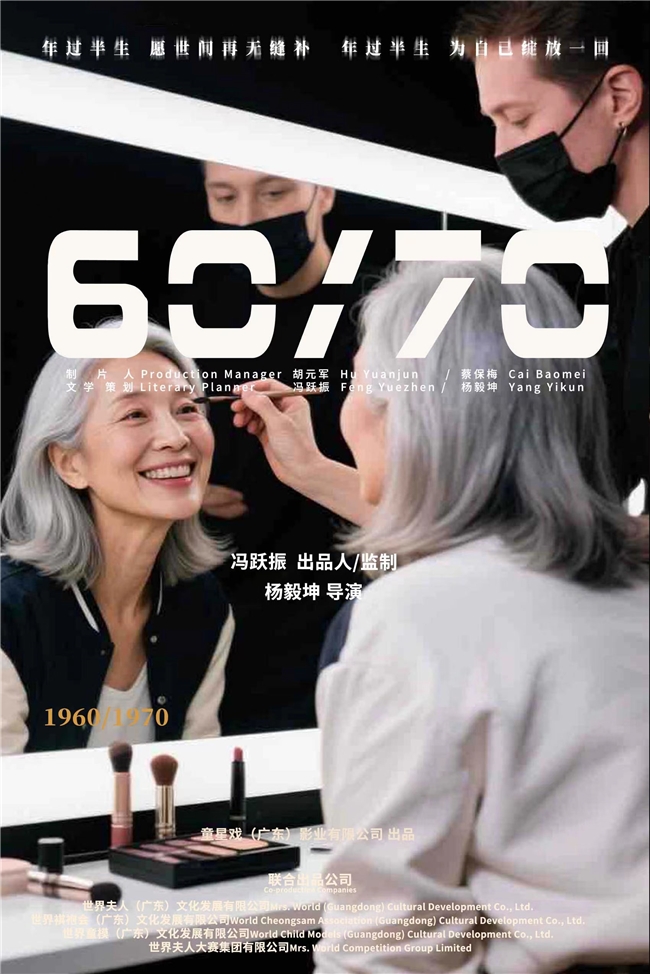 据悉,电影《60/70》由童星戏(广东)影业有限公司出品,世界夫人(广东)文化发展有限公司、世界褀袍会(广东)文化发展有限公司、世界童模(广东)文化发展有限公司、世界夫人大赛集团有限公司联合出品。影片将分两期拍摄,完成广州段拍摄后,后续将转场横店等地继续取景,全部拍摄完成并完成后期制作后,将择期与观众见面,并参赛第79届戛纳国际电影节,向国际舞台传递中国退休群体的生活温度与精神力量。届时,影片出品人冯跃振,制作方代表胡元军、蔡保梅、陈玲,导演杨毅坤将携全体主要演员团队亮相第79届戛纳国际电影节红毯,并在戛纳举办影片全球首映活动。