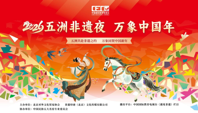 岁在丙午,序属孟春。当神州大地沉浸于辞旧迎新的祥瑞之气,2026“五洲非遗夜·万象中国年”新春晚会于京华璀璨献映。晚会以“非遗焕彩·共话传承”为魂,分设“骐骥呈祥·五洲同春”“匠心焕彩·非遗新声”“五洲对话·共话传承”“新春非遗互动”四大篇章,邀四海非遗巨擘、文化名宿、艺坛翘楚共赴此约。丝竹不绝,匠心不眠,一场贯通古今、联结中外的文化盛宴,于此间铺陈出中华文明的万千气象。