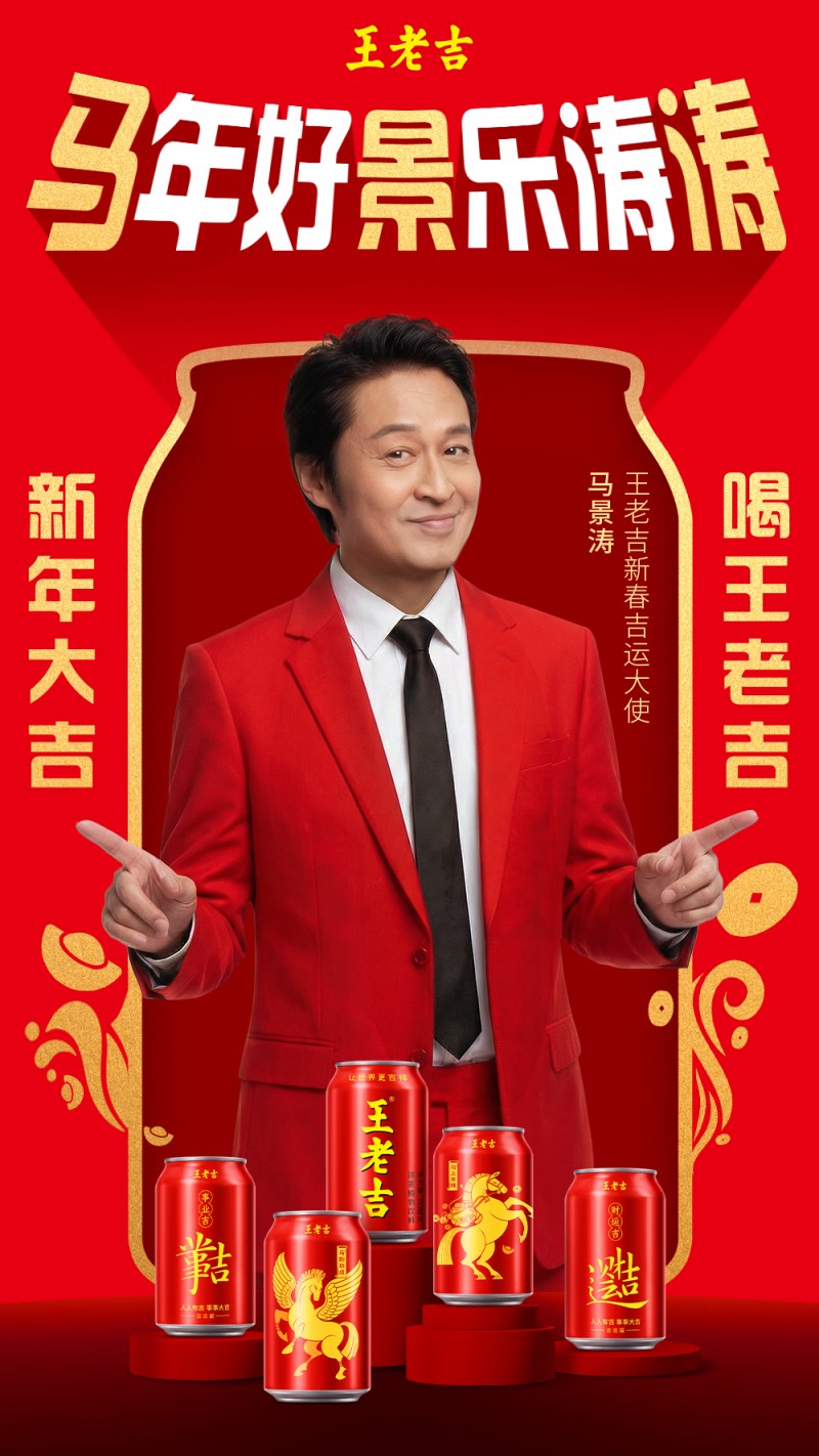 不仅如此,2月8日,舒湃品牌马景涛短视频正式上线,打造贴合新春出行、休闲场景的宣传内容,实现品牌与明星气质的精准契合;2月11日,国民品牌王老吉也同步发布马景涛专属马年短视频,此次合作深度贴合王老吉马年CNY营销布局,将马景涛的国民度与品牌“吉文化”相结合,打出“马上喝王老吉,马上就有吉”的口号,助力王老吉马年吉言罐的推广与新春市场的布局,进一步扩大品牌在新春期间的影响力。