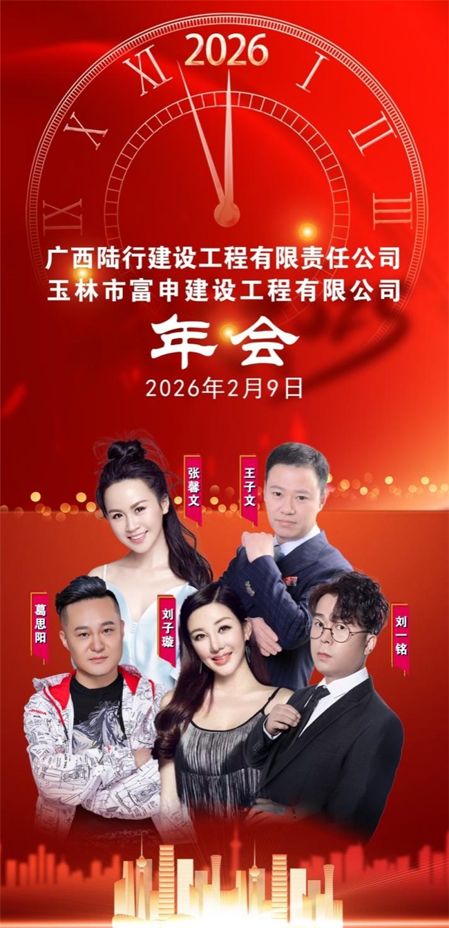近日,广西陆行建设工程有限责任公司年会盛典在热烈喜庆的氛围中隆重举行。总经理与全体员工齐聚一堂,共襄盛典。本次年会特邀著名央视公益中国主持人王子文倾情助阵,星光大道冠军歌手张馨文、著名演员歌手葛思阳、著名原创歌手刘一铭、著名歌手刘子璇(代表歌曲《嘴巴嘟嘟》)等一众嘉宾联袂献艺,为陆行建设人献上一场视听盛宴。公司陆总、蒙总联袂担纲主持,与全体员工共度这一荣耀时刻。