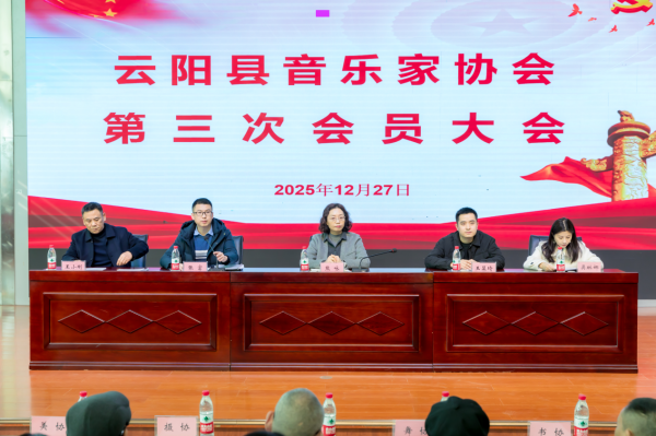 近日,云阳县音乐家协会第三次会员大会于2025年12月27日下午在青龙小学学术报告厅隆重召开。大会总结过去五年工作成果,审议通过了第二届理事会工作报告《谱写梯城新韵、奏响时代强音》,表决通过协会章程(修正草案)及选举办法,并选举产生第三届理事会。随后召开的第三届理事会第一次会议,选举产生新一届主席团:王小刚当选主席,邬小东、黄伟文、文军、刘华、邹记福、余蜀鄂、周铁山、刘和柒当选副主席,秘书长由邬小东兼任。