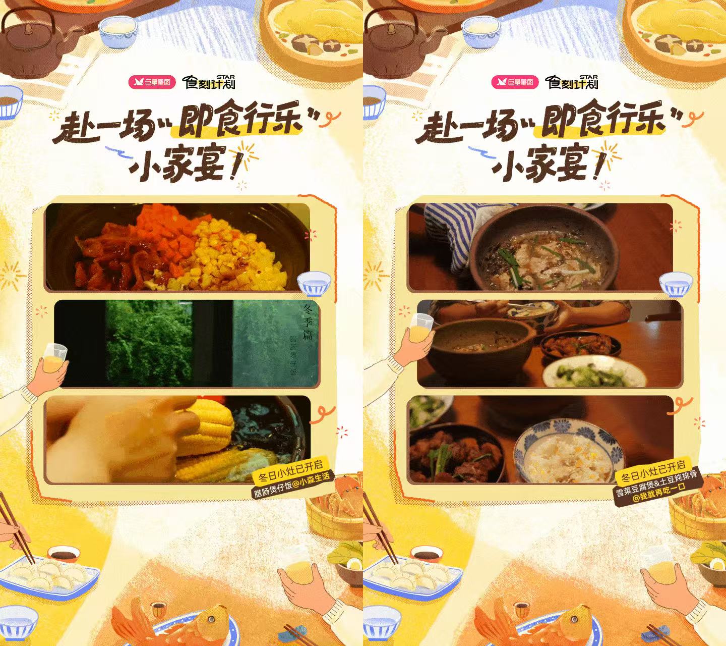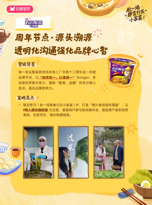 紧贴这股温暖潮流,巨量星图携手统一老坛、美菱等众多品牌乘势推出冬季时令IP——「赴一场即食行乐小家宴」第二季。