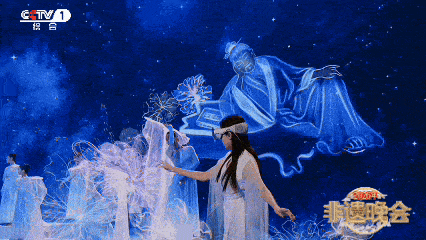 《逍遥游》中,海阳大秧歌、山东古筝乐、高密扑灰年画等非遗邂逅VR、AR技术与仿生装置,氤氲出齐鲁非遗与科技赋能交融的奇幻意境。