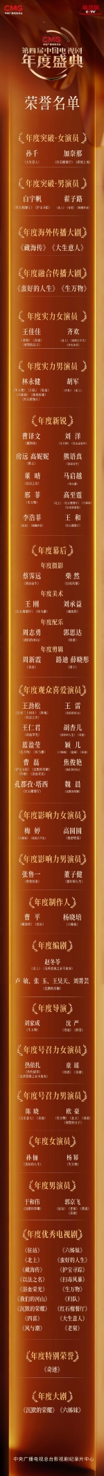 CMG第四届中国电视剧年度盛典,梳理一年间总台大剧创作,并以此纪念光影中那些隽永的人生。