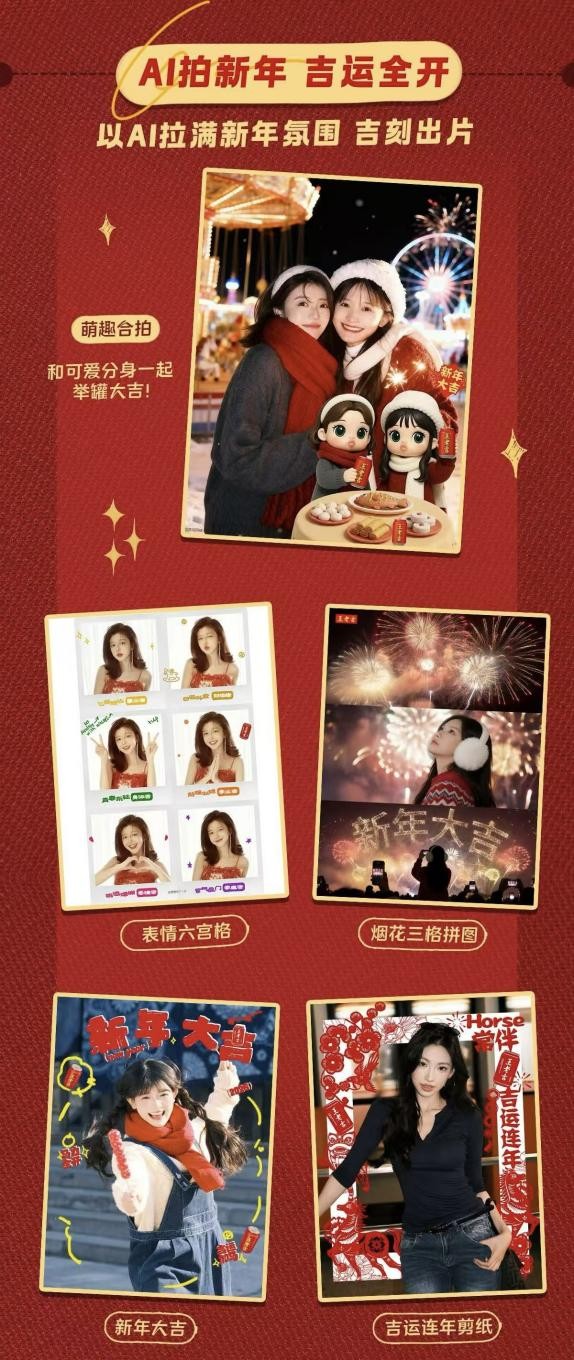 随着广大用户的踊跃参与,“吉文化”大片在多平台扩散,实现破圈传播,沉淀了无数个充满年味的幸福瞬间。不少年轻用户在体验后纷纷表示,这些AI玩法让拜年变得更有趣、更有仪式感。一位粉丝兴奋地分享:“这种AI互动太有创意了,新奇又温馨,这才是属于我们年轻人的新年味。”