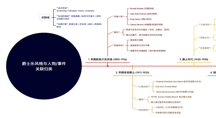 孙康宁表示,AI技术为爵士乐教学带来效率与深度双重提升。通过将海量文献、音频资料导入AI智能体,可依据教学大纲与课堂需求快速生成思维导图、知识脉络图,清晰梳理爵士史发展脉络与即兴思维框架,有效破解传统教学中“资料杂、理论深、难把握”的难题。