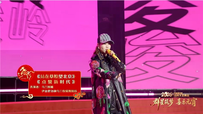 作为晚会的重磅嘉宾,著名歌手、音乐创作人乌兰图雅惊艳登场,国民经典歌曲《站在草原望北京》引爆全场氛围,她的嗓音清澈嘹亮、饱含深情,既有草原的辽阔与豪迈,又有草原儿女对祖国的赤诚与眷恋,也现场观众感受到了经典作品的持久魅力。