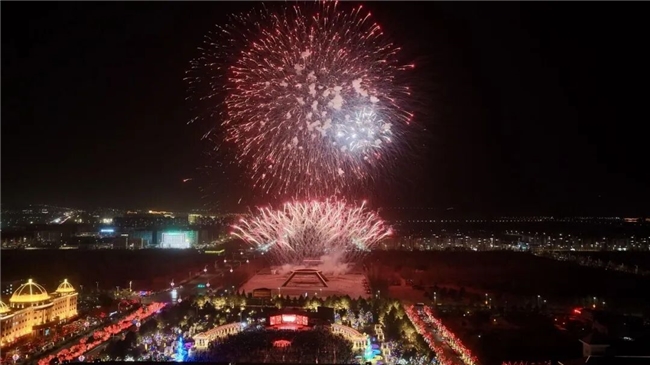 星光与烟火一同点亮草原夜空。乌兰图雅的演出落幕之后,同心筑梦广场的元宵焰火秀如期绽放,万千璀璨焰火划破夜空,为喜乐元宵之夜画上了最绚烂的句号。