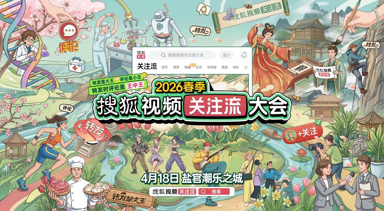 搜狐视频播主大会更名为“搜狐视频关注流大会”后首次亮相,即将于4月18日在盐官潮乐之城举行2026春季搜狐视频关注流大会。作为播主社交顶流盛会,本届关注流大会仍将大咖云集,还会有很多活跃在关注流的明星名人播主参与,“以视频会友,不亦乐乎”,共同在关注流大会上进行互动,鼓励社交破圈,“转发是大王,评论是小王,转发时评论是王中王”。