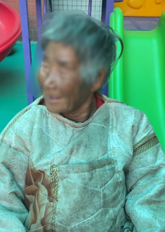 老人眼神游离,嘴里快速嘟囔着一串音节,音调奇特,无人能懂,无法提供任何有效信息。她偶尔挥手,像是在拒绝,又像只是无意识地摆动,显然神智并不清明。