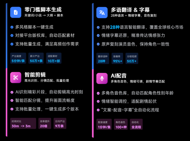 我们始终相信,技术的终极本质是平权。过去,内容出海是头部影视公司、大型平台的专属赛道,版权资源、专业翻译团队、渠道合作资源、专业运营人员缺一不可。