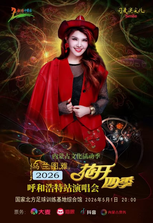 草长莺飞五月天,清风送暖润青城。五一假期,邂逅惊喜。内蒙古首府呼和浩特早已为你备好专属浪漫——5月1日,著名歌手、音乐唱作人乌兰图雅将携“花开四季”演唱会,在国家北方足球训练基地综合馆温情开唱。