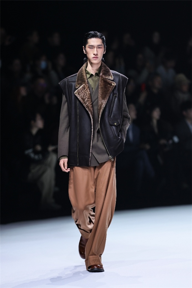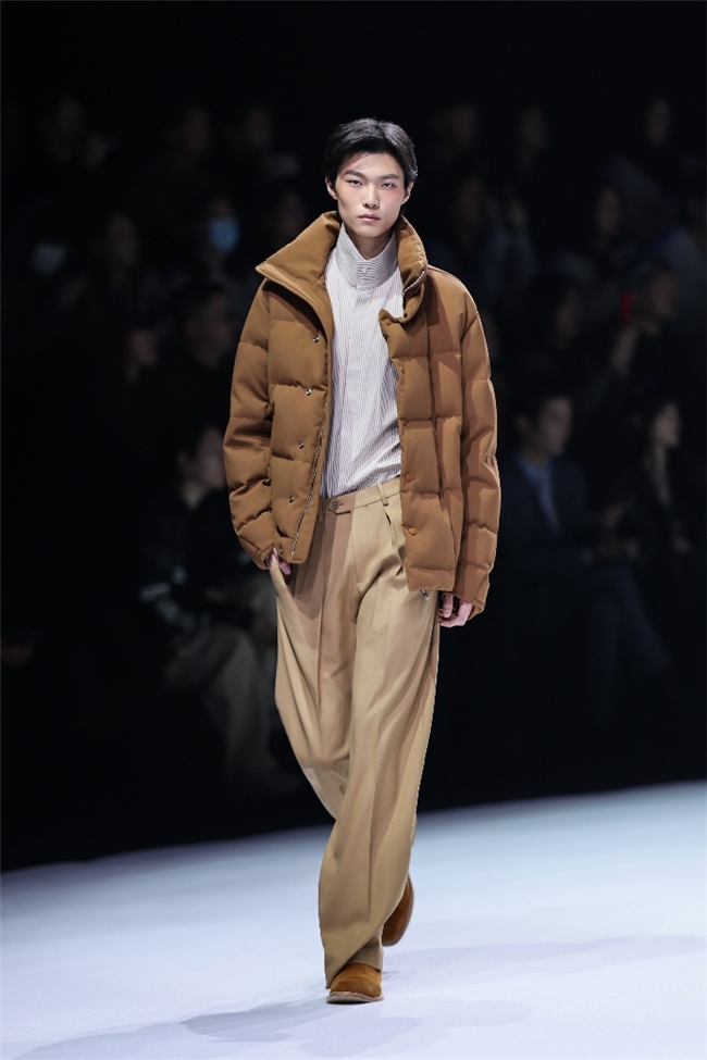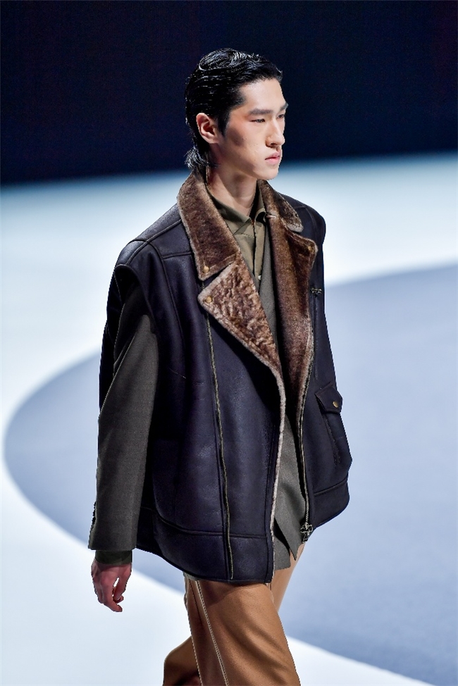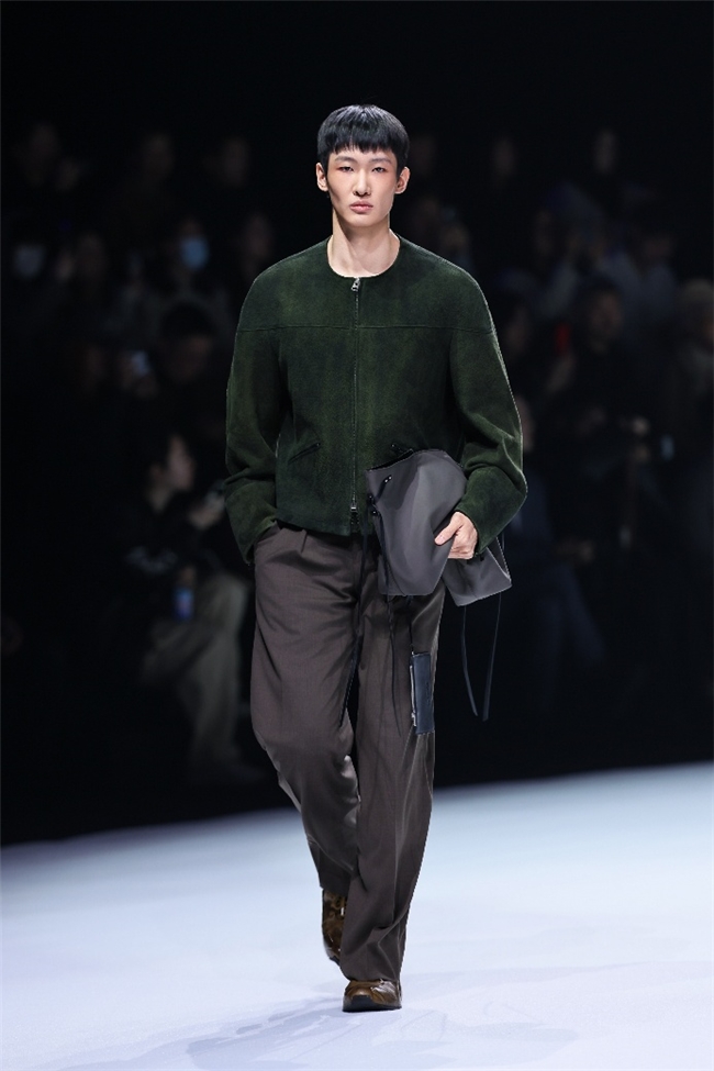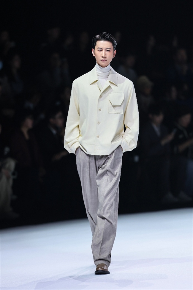 在静谧的光韵中,流淌主题以设计打破都市着装的边界,在保留庄重感的同时,将实用功能性巧妙融入日常着装,实现男装美学的悄然焕新。精简的设计手法和柔和舒适的色调,搭配一系列致密挺括的高性能材质,在含蓄的光泽质感中,打造出不惧时间变迁的实用单品。原本线条利落、廓形松弛的单品,则通过质地柔糯、肌理鲜明的毛呢等面料,强化舒适的温暖感。单品以微创意设计带来的精巧细节,有效实现精致与优雅的和谐共生,完美适配当代人多元流动的生活方式。