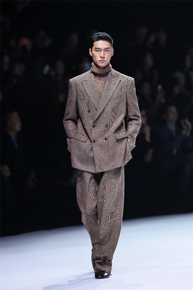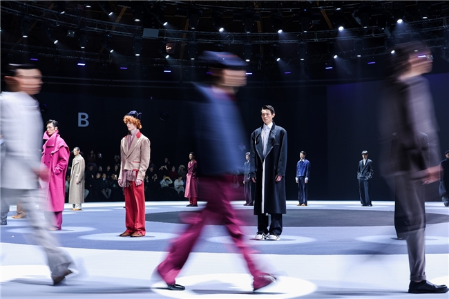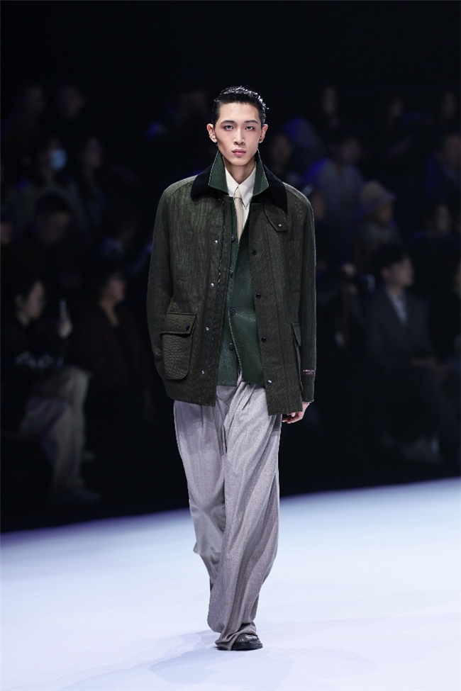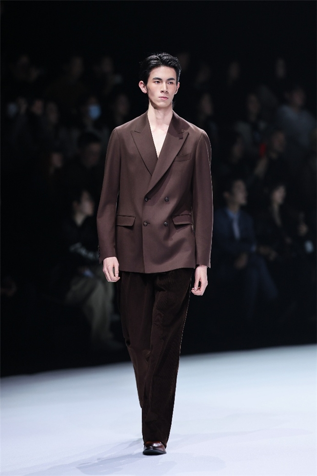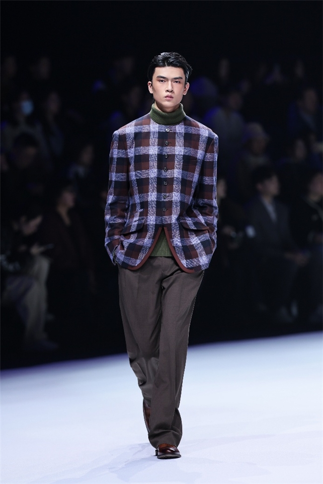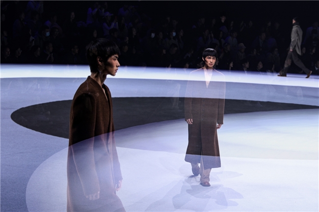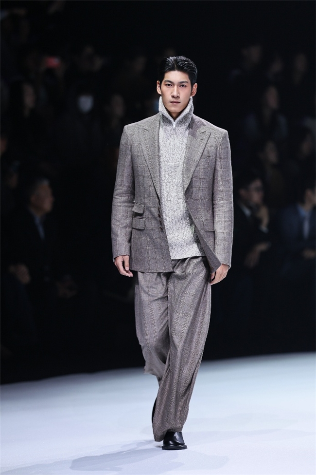 秀演以流行趋势核心概念“聚势”及分主题“雕琢、流淌、藏蕴、光影”为灵感根基,通过“循真、共生、云游、万象”四大系列作品传递男装趋势的全新表现,于悠长文韵和现代设计的理念交汇中,在洋溢温润智感和摩登先锋性的时尚情境下,重塑当代商务男装的设计美学,以松弛、睿智的雅士风韵,焕启2026秋冬中国西服进阶方向。