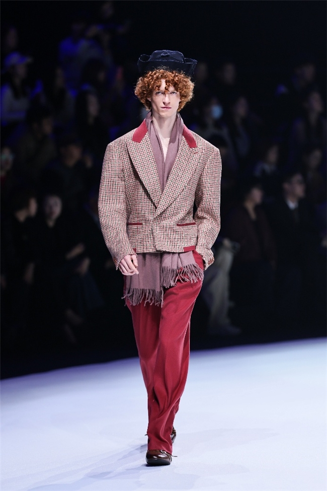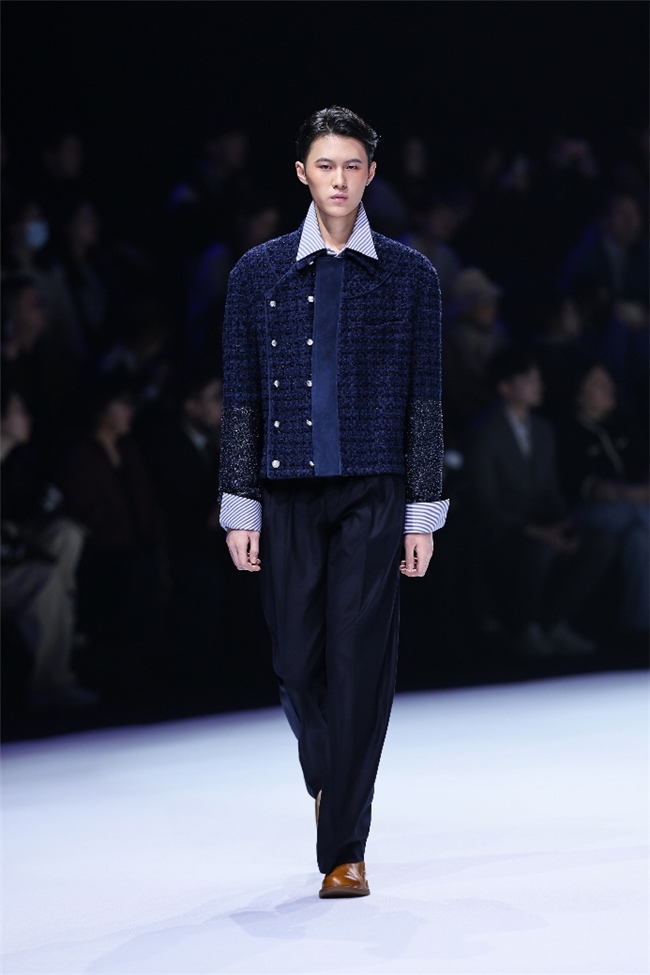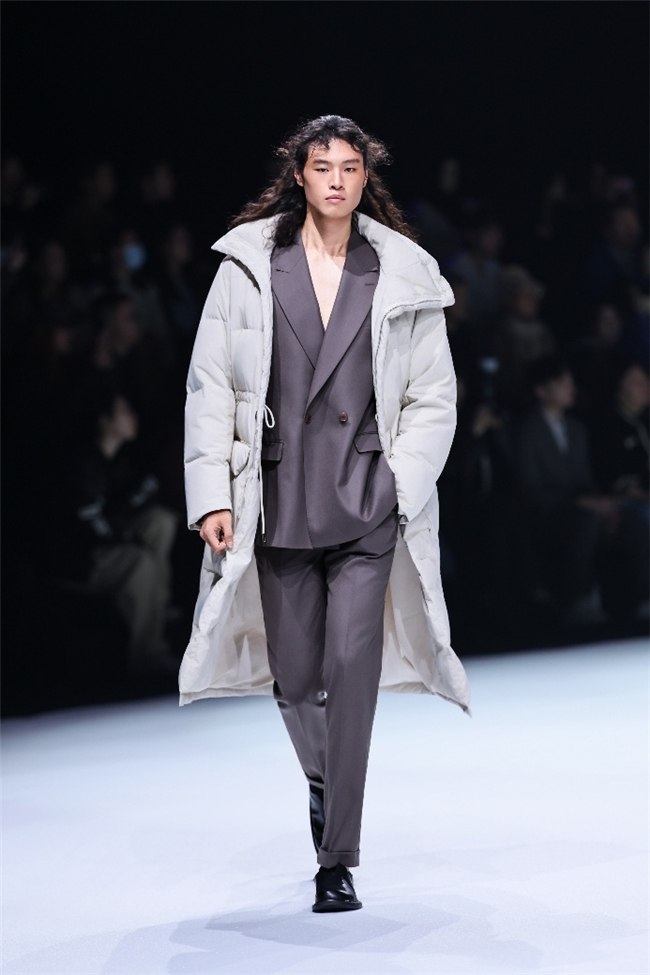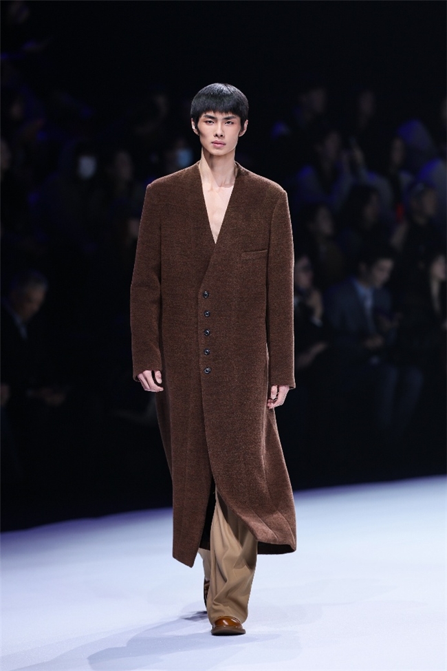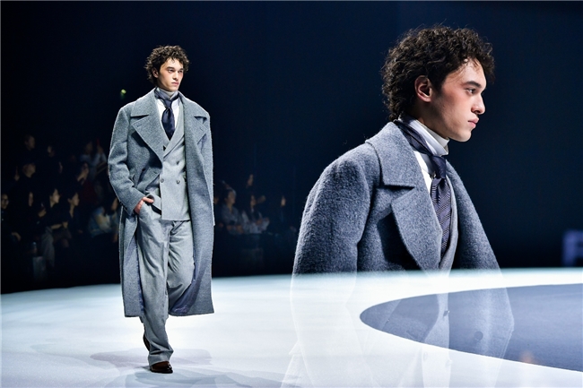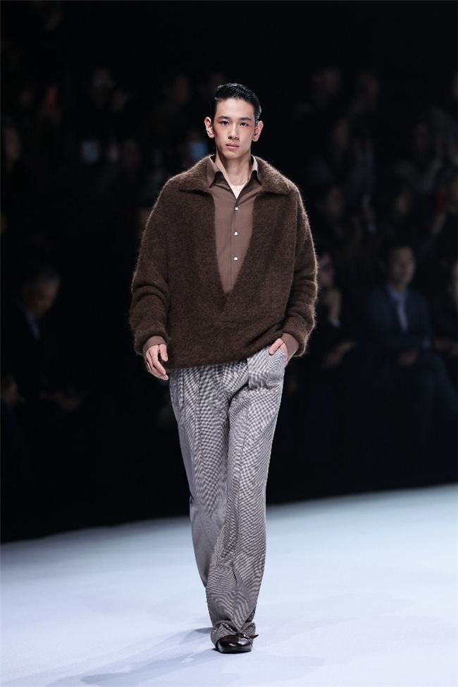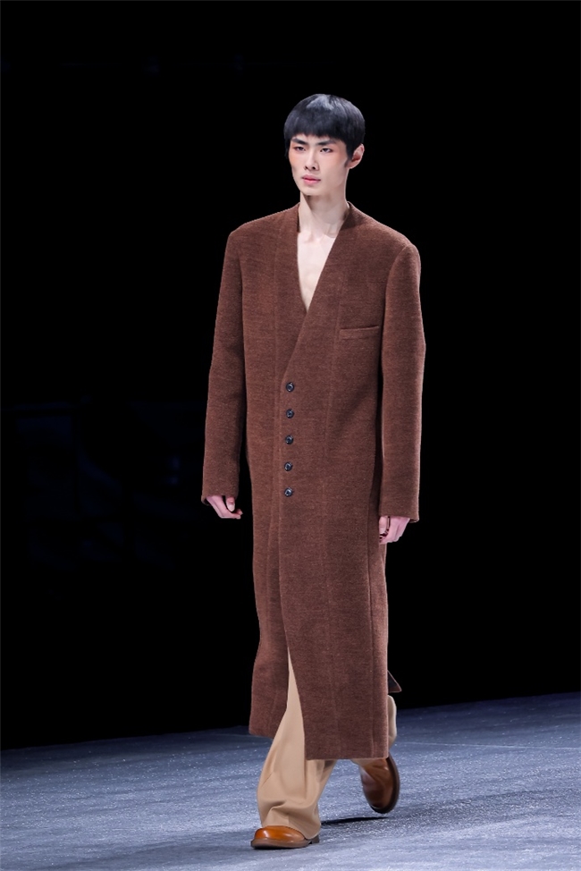 秀演以流行趋势核心概念“聚势”及分主题“雕琢、流淌、藏蕴、光影”为灵感根基,通过“循真、共生、云游、万象”四大系列作品传递男装趋势的全新表现,于悠长文韵和现代设计的理念交汇中,在洋溢温润智感和摩登先锋性的时尚情境下,重塑当代商务男装的设计美学,以松弛、睿智的雅士风韵,焕启2026秋冬中国西服进阶方向。