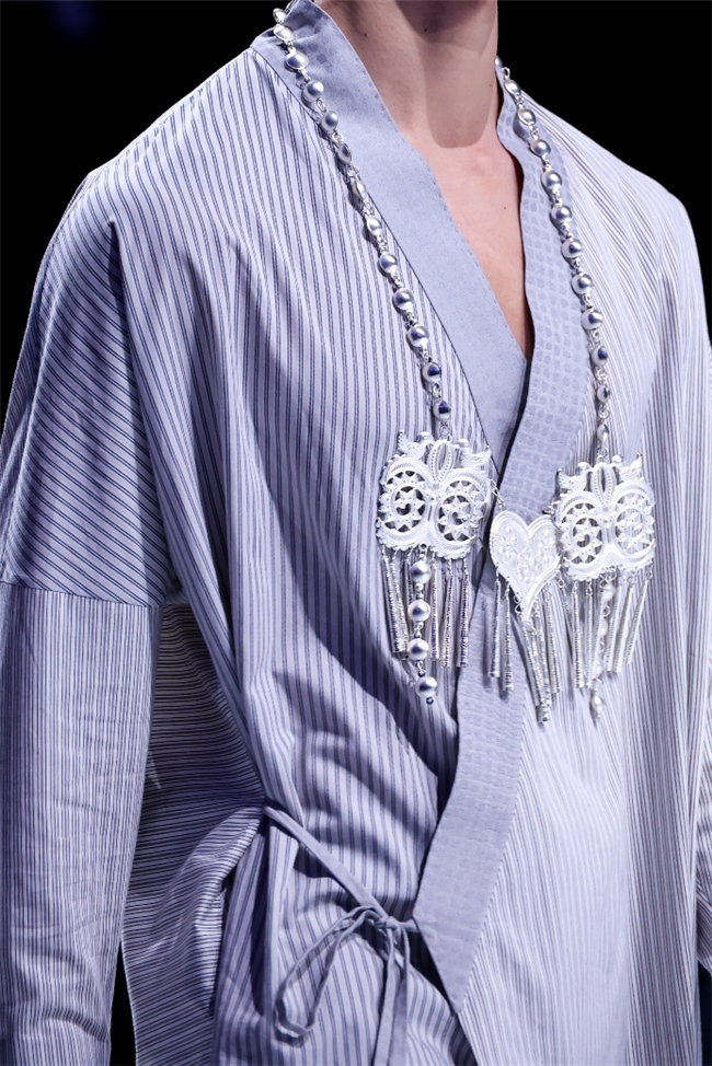 藏蕴聚焦传统东方生活美学的年轻化塑造,承袭经典重塑、文化新生的设计脉络,打造出契合匠心理念的着装风格。色彩以经典复古色系为主调,点缀鲜活亮色增添灵动活力。而深受怀旧文化影响的新复古混搭风,在经典中式国潮元素的影响下,开启全新的篇章,铺陈出独具一格的时尚氛围,如将传统非遗文化设计作用于牛仔面料上,可为年轻群体带来兼具精致潮范儿和古典手作韵味的穿搭体验。而慵懒流畅的舒适廓形单品,则利用自然肌理的毛质面料,为现代穿搭加持更多闲适的自由感和粗犷的魅力。