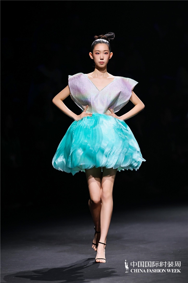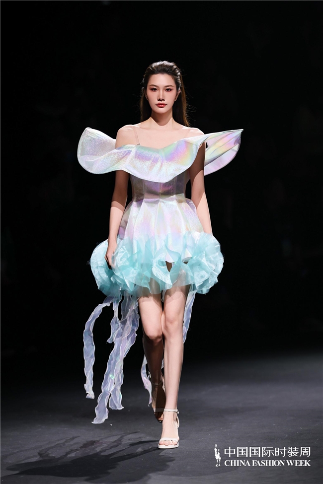 从画稿到成衣,从灵感到秀场,本场发布清晰勾勒了少年设计力量从创意萌发到舞台绽放的成长轨迹。T台之上,45套作品依次登场,既保有儿童视角独有的大胆与自由,也展现出超越年龄的审美感知与表达能力。无论是廓形的构建、材质的运用,还是色彩与细节的处理,都显露出孩子们对城市文化与个人感受的细腻捕捉。童趣与专业在此交相辉映,共同构成了一场兼具温度、诗意与时代感的秀场叙事。