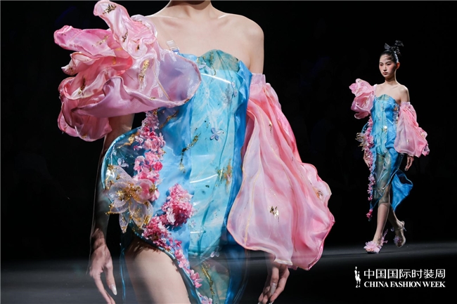 尤为值得关注的是,本场发布在童真想象之外更呈现出新一代设计者对中华优秀传统文化的细腻感知与创造性转化。皮影、点翠、剪纸、苗绣、竹编等非遗技艺,被巧妙转译于面料肌理、廓形结构与装饰细节之中;古诗词意境、云肩、襦裙、宋锦以及民族服饰文化等传统美学元素,也在孩子们的笔触下获得了新的理解与重构。小小设计师们以自身所处的时代特征与审美感知,赋予这些文化符号更轻盈、更鲜活的表达方式。现场还同步进行了小小设计师荣誉发布与展示,进一步呈现了新生代设计力量的成长风采与创作成果。