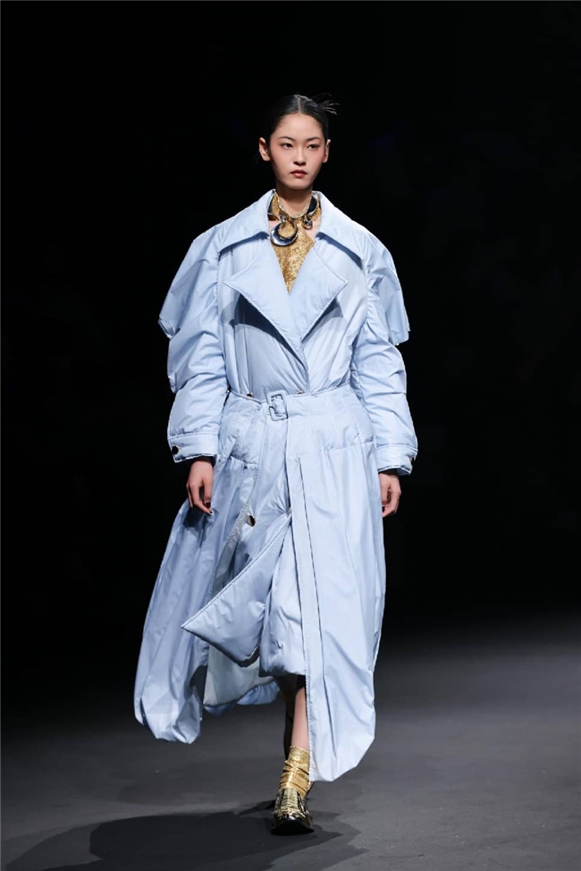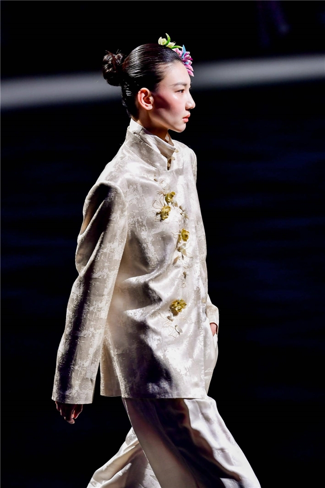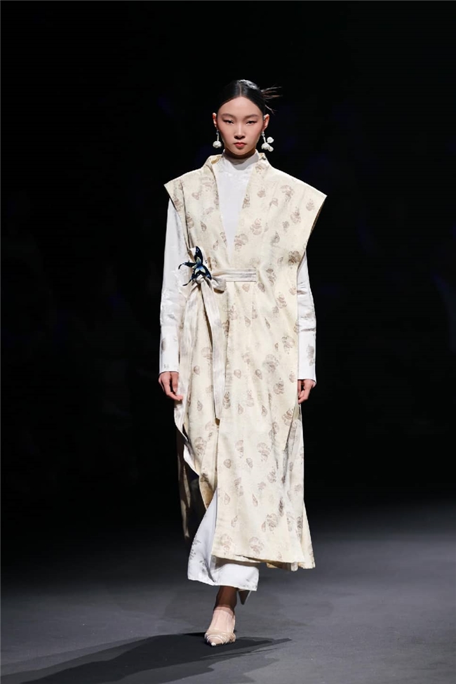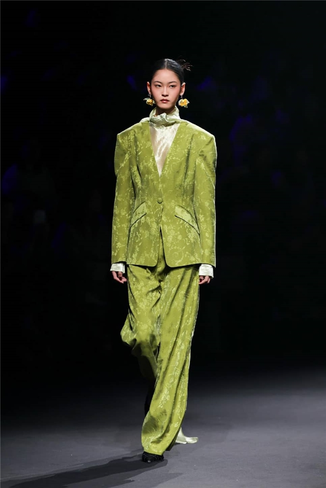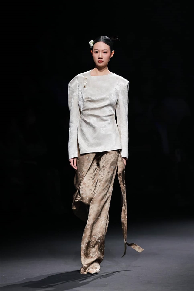 秀演特邀中国十佳时装设计师孙德春,以本季流行趋势的核心概念“聚势”为灵感主旨,紧扣“雕琢、流淌、藏蕴、光影”四大主题构建系列服装作品,将“盛泽织造”的高端面料与前沿的设计巧思深度结合,在经纬交织间,诠释科技、时尚、绿色、文化的共融之美,在传承与创新间,尽显绸都美学新生。