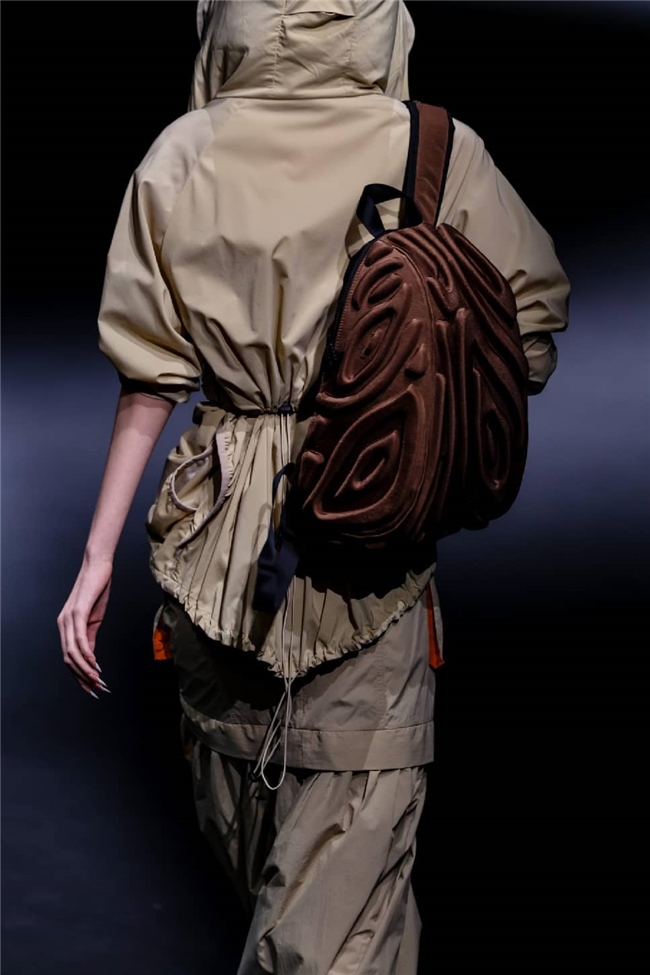 恒信织造通过“流淌”主题,打造出一场兼具东方传统美学与自然休憩感的潮流梦境。包括醋酸在内的一众优质纤维素面料,通过柔润飘逸的质感和充满雅韵的光感,成为温柔与诗意的绝佳载体。部分织物以丝滑触感搭配优雅自然的肌理,显露灵动的韵味,同时利用独特的提花织造工艺,将流水、竹影等意象织就成细腻暗纹,在经纬交错间勾勒流动光影,为服装的叠搭强化梦幻的意趣。一系列表面带有哑光、微皱外观的面料兼具生态可持续属性,搭配生物印染工艺呈现的优雅治愈色彩。为烘托面料的质感,衣角处立体装饰的非遗绒花引发关注,于感性浪漫的氛围中,映衬出静雅的传承之美。