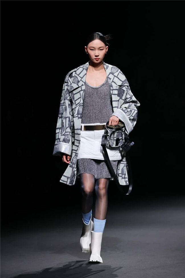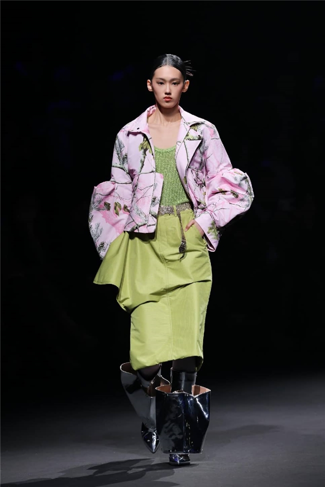 “光影”主题下,新曼丰锚定实验数字风与实用奢华的潮流内核,以艺术化手法重塑面料与服装的产品本质。人类对前沿科技的畅想被融进面料的外观表达,创造出奇幻的未来时尚美学。一系列轻盈柔韧的环保科技面料,通过创新的织造工艺,构筑起风格独特的微肌理表面和多变的光效外观,叠加科技光泽涂层,让面料在哑光与亮光的质感碰撞间,映现曼妙的感官效果,前卫的设计巧思和色彩对撞则为面料加持多维的视觉层次。迷幻感的酸性色彩在面料上流转,配合或巧趣灵动或抽象艺术的印花图案,让服装成为承载瑰丽艺术与科技力量的风尚奇迹,完美诠释了动感与奢华相融的时尚新章。