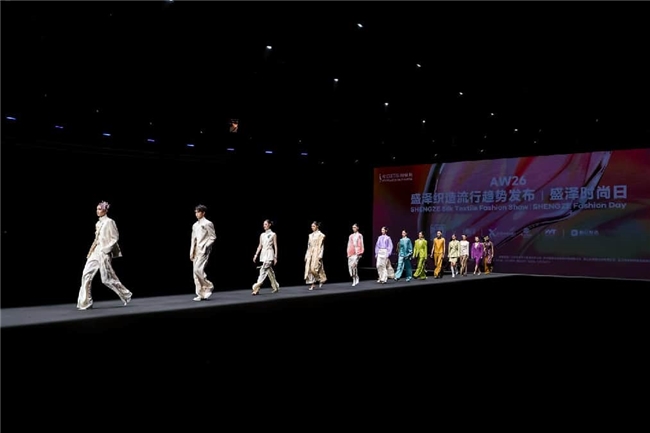 作为“AW26流行趋势发布秀”的收官之作——「AW26盛泽织造流行趋势发布丨盛泽时尚日」于3月24日惊艳亮相2026中国国际时装周(春季)。本次发布秀以中国纺织信息中心、纺织产品开发中心发布的“2026/27秋冬中国纺织面料流行趋势”为设计蓝本,汇聚罗曼罗兰、新曼丰、维泰丝绸、恒信织造四大盛泽标杆企业的匠心之作,以深厚的产业底蕴与现代时尚交融碰撞,为时尚产业的秋冬画卷注入全新灵感与妙想。