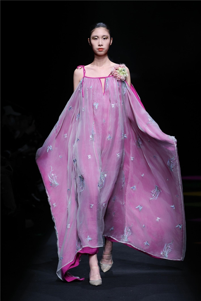 从民间艺术的结构实验,到高定体系下的极简东方;从数字语境中的材质更新,到植物染色中的自然表达;从非遗工艺的当代转译,再到东方自然意象的流动书写,本场发布以7组设计师各具辨识度的创作表达,共同呈现出设计如何在既有审美经验与当下表达之间持续生成新的语言。也正是在这样的并置与交汇之中,“橙黄橘绿”不再只是一个诗意命题,而成为一场关于东方审美、材料更新、工艺转译与未来表达的综合实践。