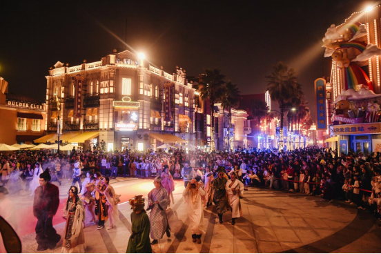 以乐园六大主题区为天然实景舞台,搭建“沉浸式巡游+街头创意表演+小型精品剧场”三维演出矩阵,让演艺内容无缝融入游客步行、游玩、打卡的全流程动线。街头戏剧演员零距离互动、巡游队伍随场景流动、小剧场剧目随到随看,将戏剧从“远距离观赏品”转化为“沉浸式体验场”,游客无需刻意购票、无需等待场次,漫步间即可邂逅戏剧,真正实现“人人皆可入戏”。