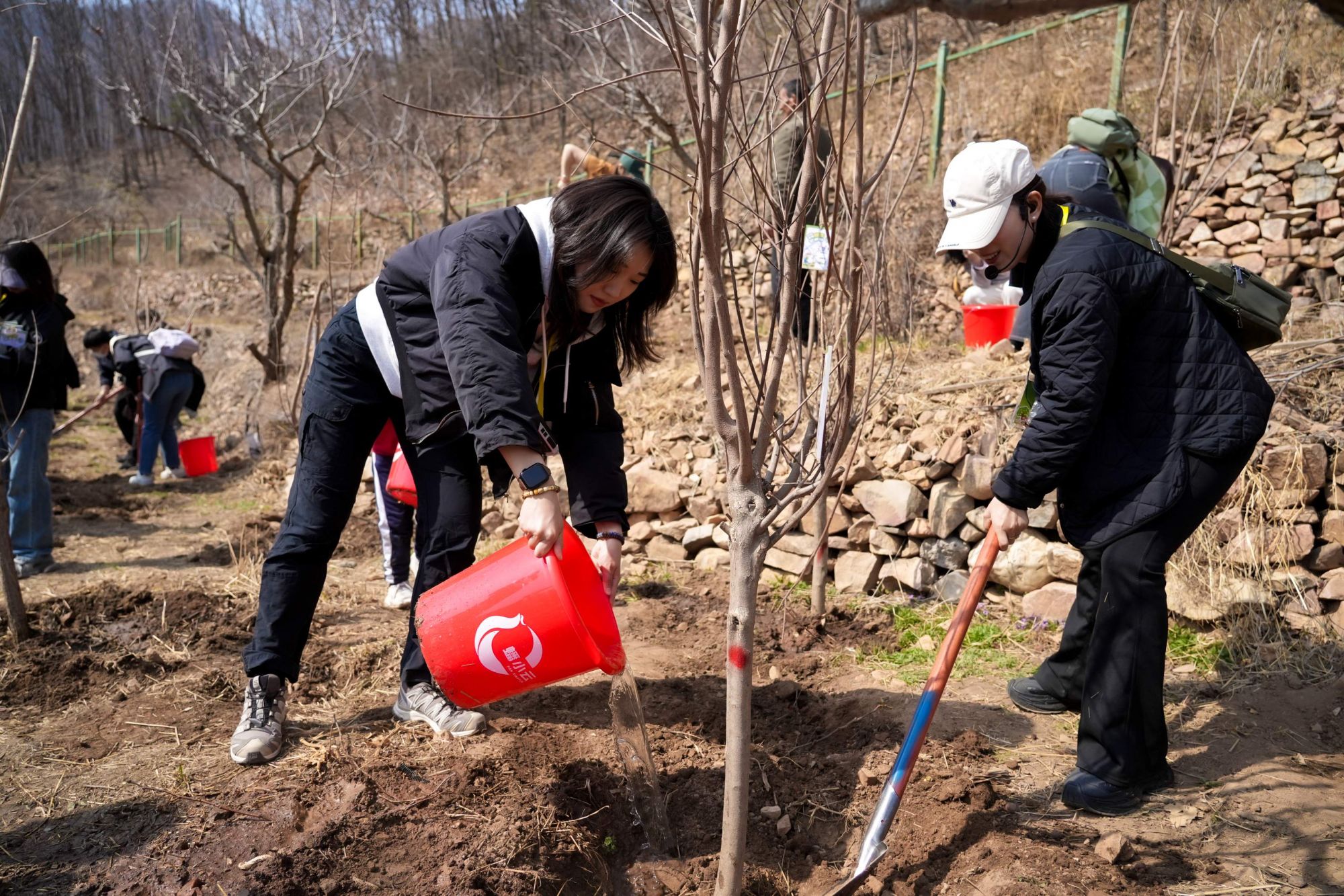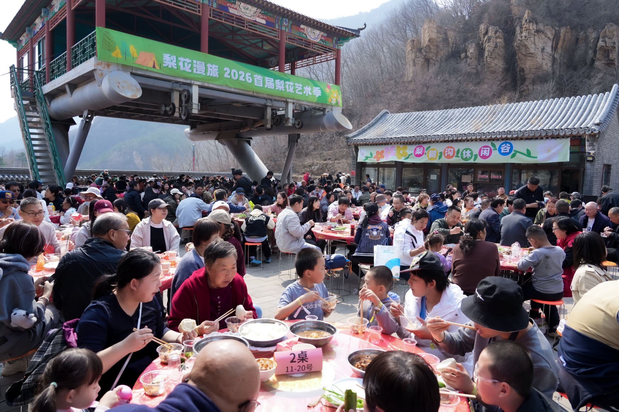 本届梨花艺术节以"春季植绿+免费民俗宴"为核心亮点,前期通过线上小程序便捷报名,吸引了亲子家庭、企业团建等大批市民游客踊跃参与,成为平谷区春季文旅消费的新热点。活动现场,游客在园林技师的专业指导下,挥锹培土、扶苗浇水,亲手栽种新绿,定制植树标牌更让生态环保理念深植人心;多处春日打卡点的设置,让游客在沉浸式体验中感受平谷的生态之美,推动生态保护理念全民普及。