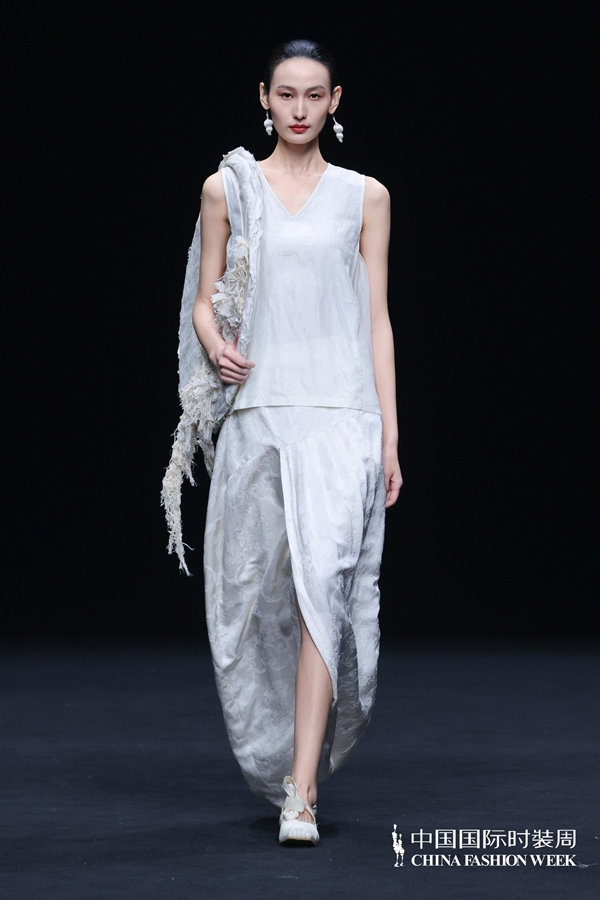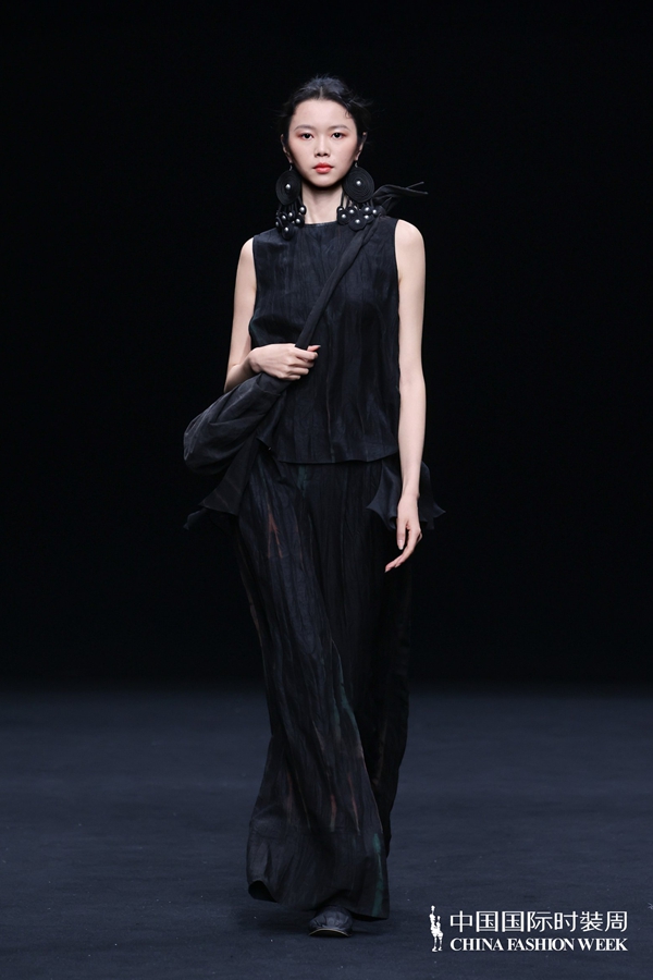 在设计呈现上,壹亍A.1以流动剪裁与松弛廓形为核心设计手法,摒弃过度修饰,消解穿着的束缚感,让服装线条随身体自然舒展。细节之处尽显匠心,手工缝制、植物染色等精工技艺的运用,进一步提升服装的质感与穿着体验,于简约中彰显高级格调。在面料选择方面,品牌秉持天然、透气、亲肤的原则,精选真丝、棉麻等天然材质,兼顾触感与体感的双重舒适,构建可持续的本真美学。秀场之上,模特以从容步态演绎系列造型,轻盈流动的衣影与现场空间氛围相得益彰,收获了现场观众的高度认可。