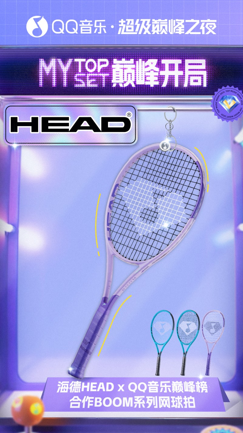 当旋律化身击穿球场的节拍,音乐便不再是听觉的独享。本次QQ音乐超级巅峰之夜与专业运动品牌HEAD海德合作,以音乐为开场信号,共同定义属于2026年的巅峰开局。双方共同打造的合作BOOM系列网球拍,拍面特别设计定制logo,将音乐的律动语言融入运动装备的视觉表达,在细节中诠释潮流与力量的交融。这不仅是一次品牌间的携手,更是一次“巅峰力量如何被感知”的全新探索——通过耳畔的旋律化为掌心节奏感与掌控力的反馈,向大众传递出巅峰时刻,人人皆可抵达的积极信念。