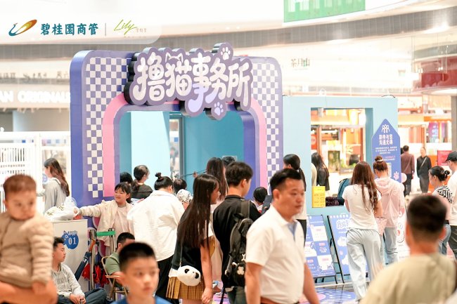 近日,东莞大朗碧桂园里悦里购物中心一楼中庭,一家名为“撸猫事务所”的沉浸式撸猫空间人气爆棚,周末日均客流超百人,成为区域新晋网红打卡地。凭借干净无异味、出片打卡点、萌猫超粘人三大核心优势,精准击中年轻人与亲子家庭的情绪消费需求,也让“撸猫经济”这一新兴风口在本地持续升温。
