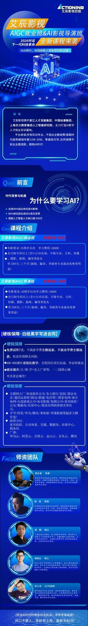 ✦ 艾辰影视深耕表演培训多年,始终站在行业前沿。2026 年,艾辰影视重磅推出两大全新王牌班级 ——AIGC全链路就业班与AI影视导演班,将顶尖 AI技术与专业影视表演、导演思维深度融合,为每一位影视追梦人,打造通往未来创作的快车道。