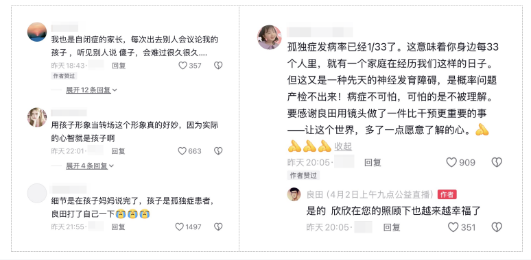 有同为孤独症家长的粉丝在评论区留言,字字扎心:“随着他年龄越来越大,我越来越绝望,看不到希望,得不到理解,不知道怎么活下去......”也有特殊教育从业者说,看到越来越多人为孤独症群体发声,帮助他们融入社会,真的很感动,很为这些“星星的朋友”开心。