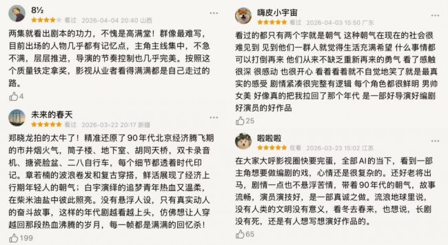 观众层面,该剧的口碑同样居高不下。不少观众表示 "越看越有味道,二刷三刷依然能被戳中"。有过异乡打拼经历的观众在剧中看到了自己当年的影子,"那种在陌生城市里的孤独与迷茫,那种朋友间互相扶持的温暖,每一个情绪都太真实了";也有观众被剧中细腻的情感打动,徐胜利与师父之间不着痕迹的关怀、父母送别时隐忍的泪水、朋友间无需多言的默契,都成为了观众心中难以忘怀的名场面。
