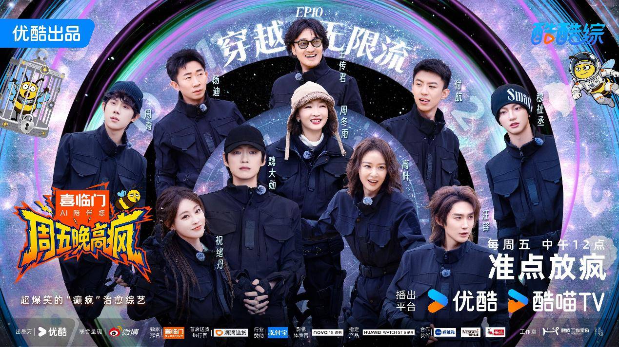 4月10日中午12点,由优酷出品、喜临门独家冠名的超爆笑“癫疯”治愈综艺《周五晚高疯》播出收官第十期。本期节目嘉宾迎来杀青,但却数次陷入无限流循环,每当他们以为要结束了离开蜂巢,却发现时钟再次重启倒计时6小时。在一次又一次地重启杀青中,嘉宾尝试了多种不同风格的结局,笑泪交织,竞争与互助并存。这趟“癫疯”之旅,也是每个人的治愈之旅。