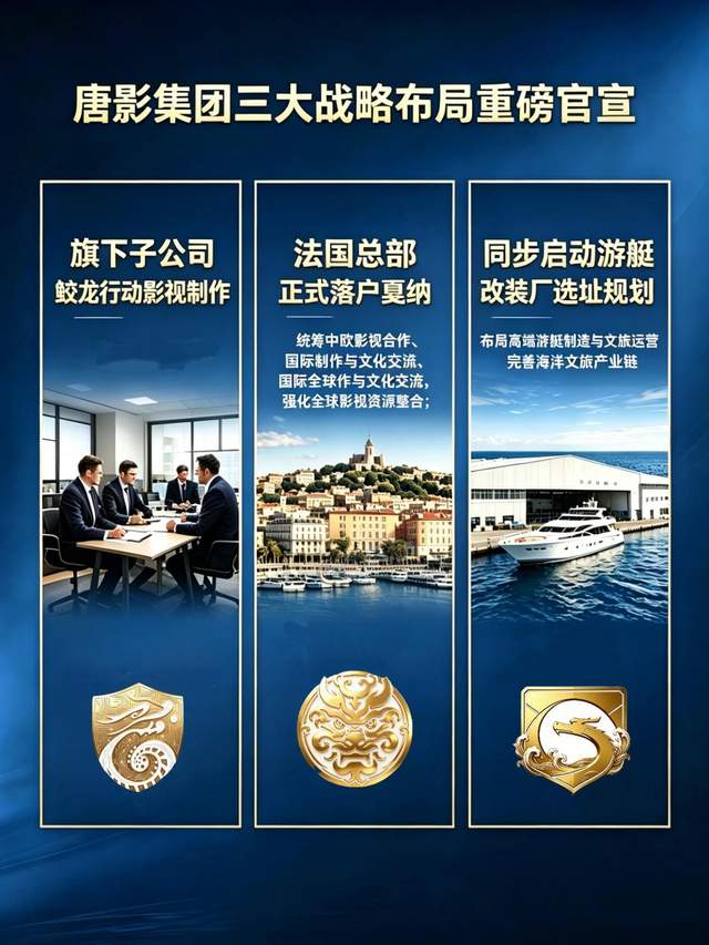 活动汇聚全球华语影人、国际制片人与行业精英,聚焦华语电影国际化创作与跨文化传播,共探光影未来。唐影集团现场重磅官宣三大战略布局:全球总部正式落户法国戛纳,统筹中欧影视合作、国际制作与文化交流,强化全球影视资源整合;旗下子公司鲛龙行动影视制作专注精品影视内容创制,尊龙宇航正式开启南法低空文旅,打造 “影视 + 低空” 沉浸式文旅新场景;同步启动迈嘉龙高端游艇公司选址规划,布局高端游艇与文旅运营,完善海洋文旅产业链。