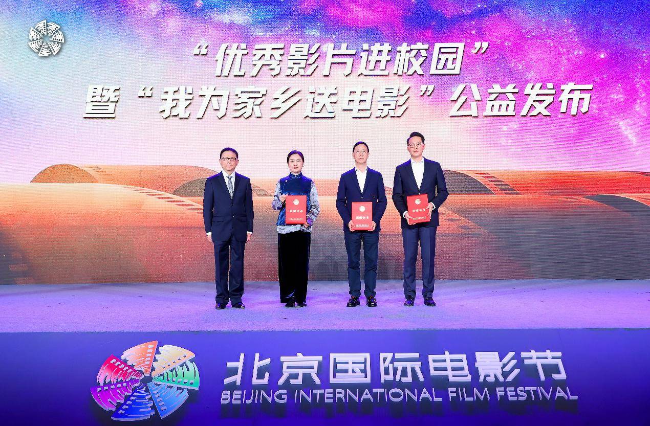 在热烈的掌声中,中国人权发展基金会与中影集团携手北京国际电影节组委会等单位共同宣布,“优秀影片进校园”与“我为家乡送电影”公益项目正式启动新一轮全国范围推广,将继续把优秀作品送到青少年面前,让光影的种子在更多角落发芽。