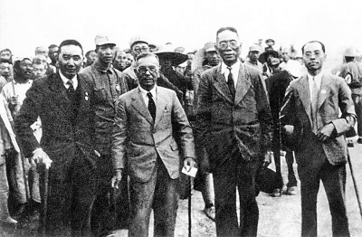 1940年5月,陈嘉庚(前排左二)等人抵达延安 图片由作者提供